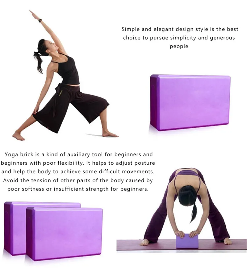 Specification: • Item number: YR2055EYB • Item Condition: 100% brand new • Size: 23cm*15cm*7.5cm/9"x6"x3") • Colors: blue, purple, pink • Name: EVA Yoga Brick • Material: EVA Features: • DURABLE LIGHTWEIGHT FOAM: These lightweight and supportive foam blocks are constructed of a durable foam with a nonslip surface and beveled edges for easy gripping • STABILITY + BALANCE: Yoga blocks provide the stability and balance needed in your practice to help with optimal alignment, deeper poses and increased strength • Features: Non-slip waterproof, soft and crack resistant,covenitent and durable, can perform various special actions step by step • EXTEND + DEEPEN STRETCHES: Blocks make for the ideal yoga prop and companion, as they are an important tool in your practice to help extend, support and deepen your stretches while also working to increase your range of motion • CARE INFO: Spot clean with mild detergent - towel or air dry (Dimensions: 23cm*15cm*7.5cm/9"x6"x3")Ideal for warming up, yoga, and post workout Notes: 1. Due to the different monitor and light effect, the actual color of the item might be slightly different from the color showed on the pictures. Thank you! 2. Please allow 1-3cm measuring deviation due to manual measurement. Package included 1 block in a polybag